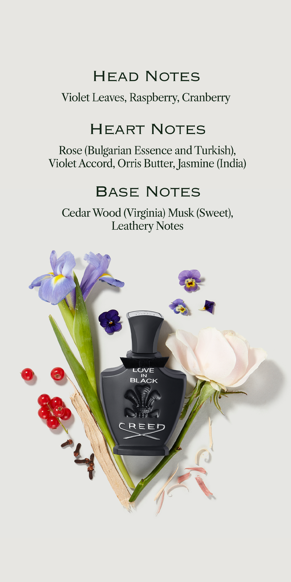 Love in Black is a perfume for women introduced in 2008. Inspired by former first lady Jacqueline Kennedy, the fragrance is composed of ingredients from the places this intriguing public figure visited and loved. Top notes encompass Italian violet, night blooming jasmine and cedar from Virginia. The heart adds Florentine iris, cloves and Tonkin musk, while the base introduces Bourgogne black currant and Bulgarian rose. The flacon is created from black sand like that of the Greek isles. This edition celebrates magic of each woman and evening elegance, which is completed by a ribbon bow on the neck of the bottle. Love in Black was created by Olivier Creed Sixth Generation and Erwin Creed Seventh Generation. Product Features: Brand: Creed Fragrance Type: Eau de Parfum Size: 75ml Targeted Group: Women Fragrance Family: Floral & Fruity Perfume Name: Love in Black Top Notes: Italian Violet, Virginia Cedar, Wildflowers Middle Notes: iris, Cloves, Musk Base